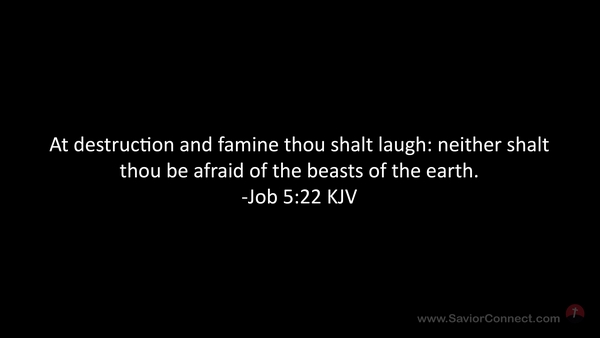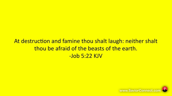 At destruction and famine thou shalt laugh: neither shalt thou be afraid of the beasts of the earth. -Job 5:22 KJV