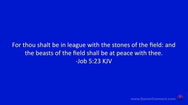 For thou shalt be in league with the stones of the field: and the beasts of the field shall be at peace with thee. -Job 5:23 KJV