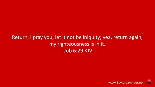 Return, I pray you, let it not be iniquity; yea, return again, my righteousness is in it. -Job 6:29 KJV