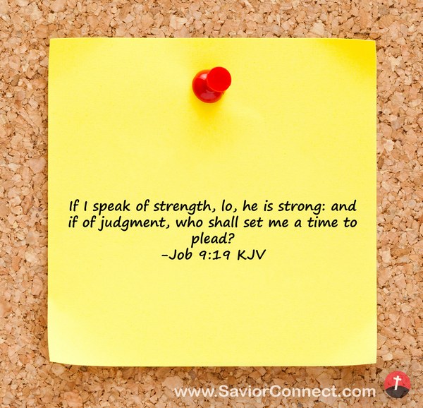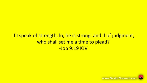 If I speak of strength, lo, he is strong: and if of judgment, who shall set me a time to plead? -Job 9:19 KJV