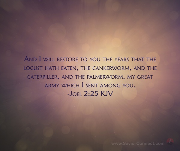 And I will restore to you the years that the locust hath eaten, the cankerworm, and the caterpiller, and the palmerworm, my great army which I sent among you. -Joel 2:25 KJV