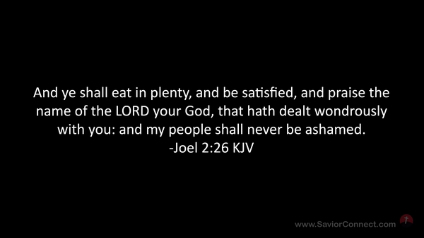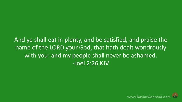 And ye shall eat in plenty, and be satisfied, and praise the name of the LORD your God, that hath dealt wondrously with you: and my people shall never be ashamed. -Joel 2:26 KJV