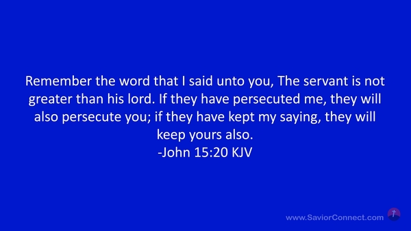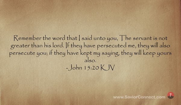 Remember the word that I said unto you, The servant is not greater than his lord. If they have persecuted me, they will also persecute you; if they have kept my saying, they will keep yours also. -John 15:20 KJV