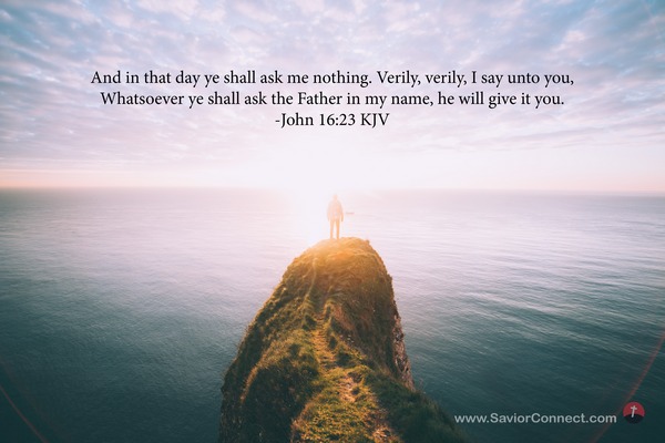 And in that day ye shall ask me nothing. Verily, verily, I say unto you, Whatsoever ye shall ask the Father in my name, he will give it you. -John 16:23 KJV