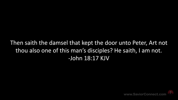 Then saith the damsel that kept the door unto Peter, Art not thou also one of this man's disciples? He saith, I am not. -John 18:17 KJV