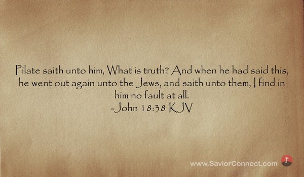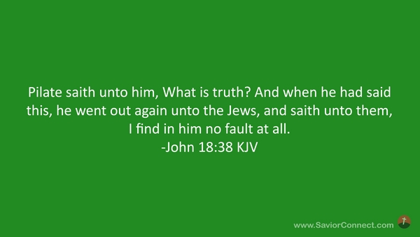Pilate saith unto him, What is truth? And when he had said this, he went out again unto the Jews, and saith unto them, I find in him no fault at all. -John 18:38 KJV