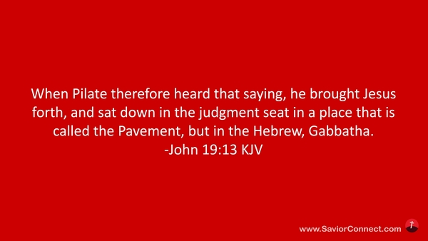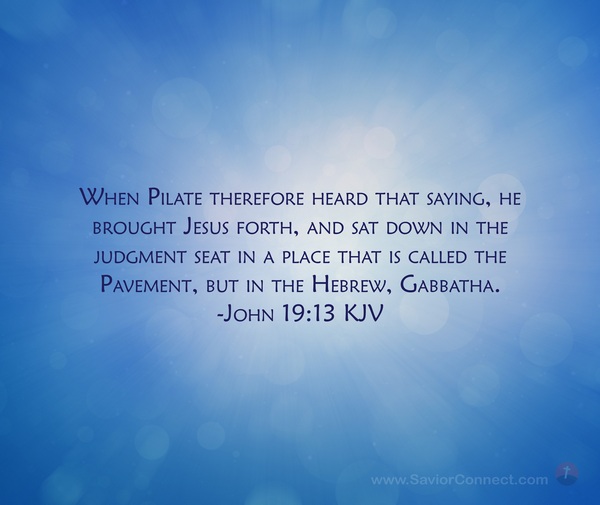 When Pilate therefore heard that saying, he brought Jesus forth, and sat down in the judgment seat in a place that is called the Pavement, but in the Hebrew, Gabbatha. -John 19:13 KJV