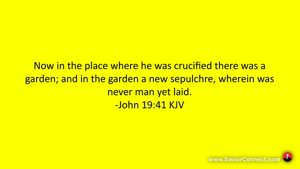 Now in the place where he was crucified there was a garden; and in the garden a new sepulchre, wherein was never man yet laid. -John 19:41 KJV