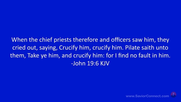 When the chief priests therefore and officers saw him, they cried out, saying, Crucify him, crucify him. Pilate saith unto them, Take ye him, and crucify him: for I find no fault in him. -John 19:6 KJV