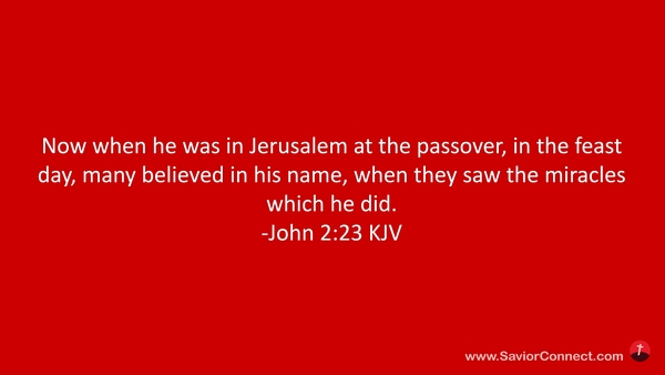 Now when he was in Jerusalem at the passover, in the feast day, many believed in his name, when they saw the miracles which he did. -John 2:23 KJV