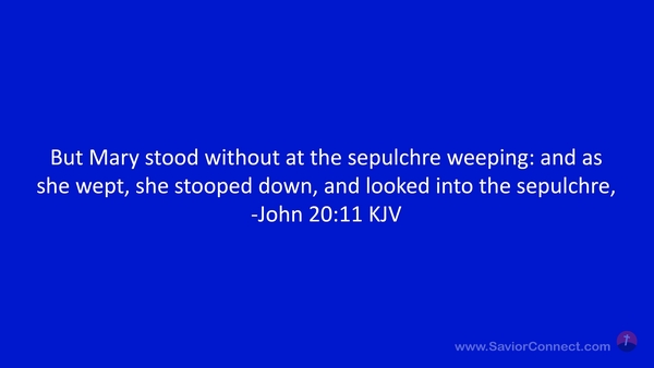 But Mary stood without at the sepulchre weeping: and as she wept, she stooped down, and looked into the sepulchre, -John 20:11 KJV