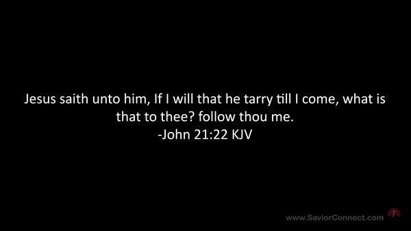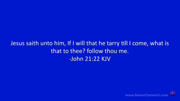 Jesus saith unto him, If I will that he tarry till I come, what is that to thee? follow thou me. -John 21:22 KJV