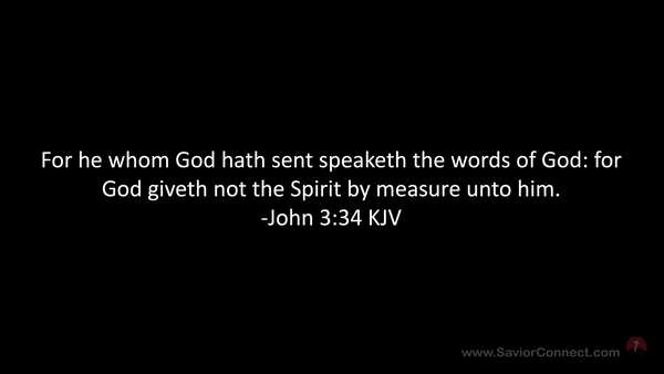 For he whom God hath sent speaketh the words of God: for God giveth not the Spirit by measure unto him. -John 3:34 KJV