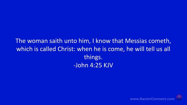 The woman saith unto him, I know that Messias cometh, which is called Christ: when he is come, he will tell us all things. -John 4:25 KJV