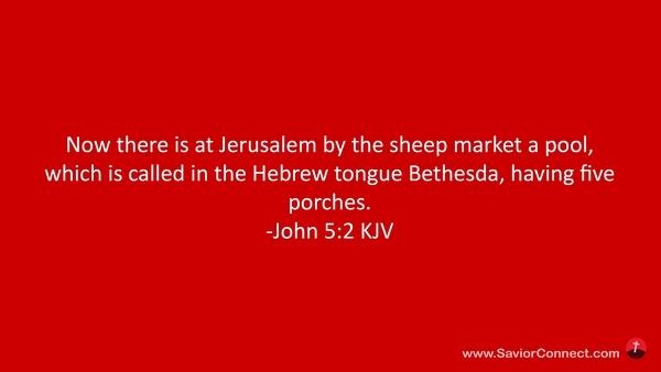Now there is at Jerusalem by the sheep market a pool, which is called in the Hebrew tongue Bethesda, having five porches. -John 5:2 KJV