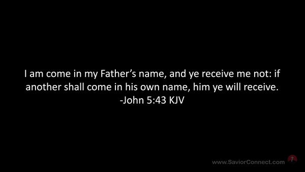 I am come in my Father's name, and ye receive me not: if another shall come in his own name, him ye will receive. -John 5:43 KJV