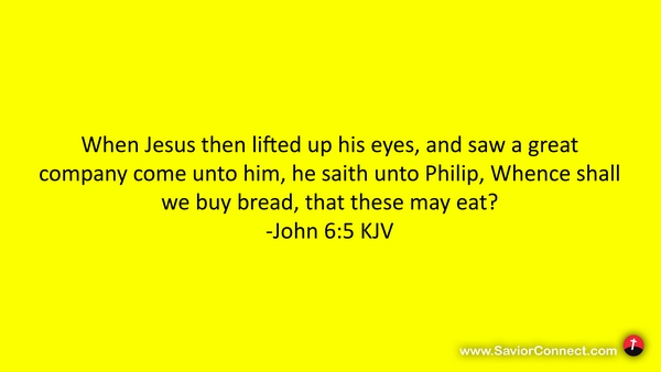 When Jesus then lifted up his eyes, and saw a great company come unto him, he saith unto Philip, Whence shall we buy bread, that these may eat? -John 6:5 KJV