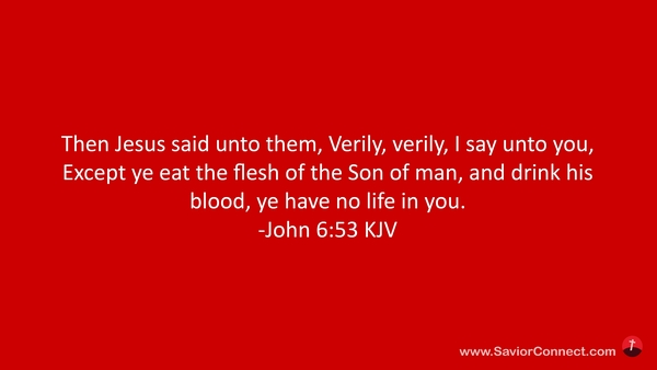 Then Jesus said unto them, Verily, verily, I say unto you, Except ye eat the flesh of the Son of man, and drink his blood, ye have no life in you. -John 6:53 KJV