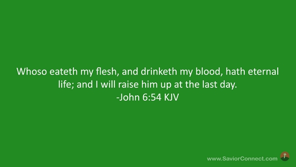 Whoso eateth my flesh, and drinketh my blood, hath eternal life; and I will raise him up at the last day. -John 6:54 KJV