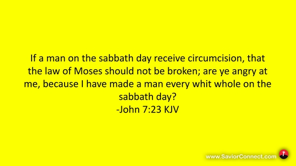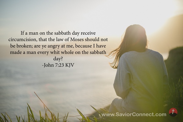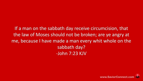 If a man on the sabbath day receive circumcision, that the law of Moses should not be broken; are ye angry at me, because I have made a man every whit whole on the sabbath day? -John 7:23 KJV