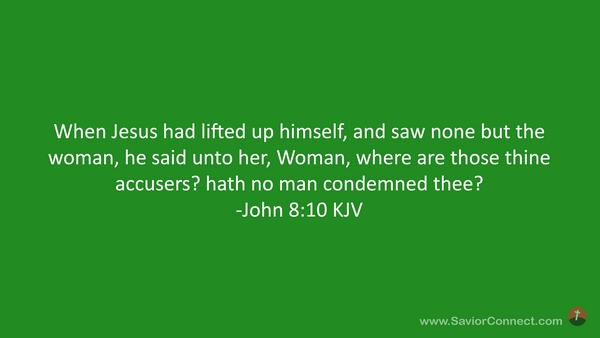 When Jesus had lifted up himself, and saw none but the woman, he said unto her, Woman, where are those thine accusers? hath no man condemned thee? -John 8:10 KJV
