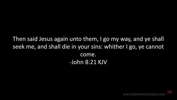Then said Jesus again unto them, I go my way, and ye shall seek me, and shall die in your sins: whither I go, ye cannot come. -John 8:21 KJV