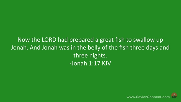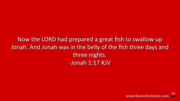 Now the LORD had prepared a great fish to swallow up Jonah. And Jonah was in the belly of the fish three days and three nights. -Jonah 1:17 KJV