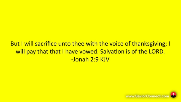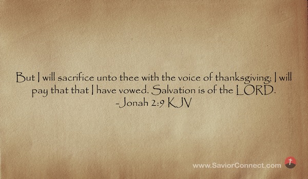 But I will sacrifice unto thee with the voice of thanksgiving; I will pay that that I have vowed. Salvation is of the LORD. -Jonah 2:9 KJV