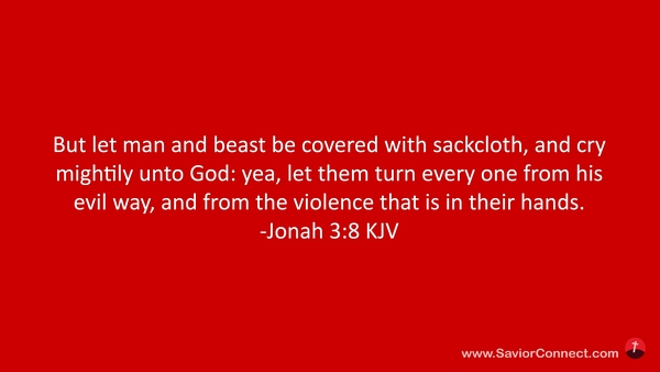 But let man and beast be covered with sackcloth, and cry mightily unto God: yea, let them turn every one from his evil way, and from the violence that is in their hands. -Jonah 3:8 KJV