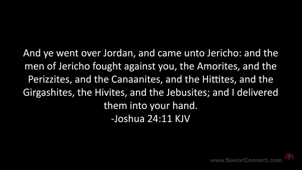And ye went over Jordan, and came unto Jericho: and the men of Jericho fought against you, the Amorites, and the Perizzites, and the Canaanites, and the Hittites, and the Girgashites, the Hivites, and the Jebusites; and I delivered them into your hand. -Joshua 24:11 KJV