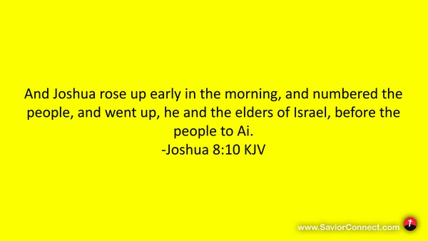 And Joshua rose up early in the morning, and numbered the people, and went up, he and the elders of Israel, before the people to Ai. -Joshua 8:10 KJV