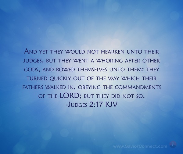 And yet they would not hearken unto their judges, but they went a whoring after other gods, and bowed themselves unto them: they turned quickly out of the way which their fathers walked in, obeying the commandments of the LORD; but they did not so. -Judges 2:17 KJV