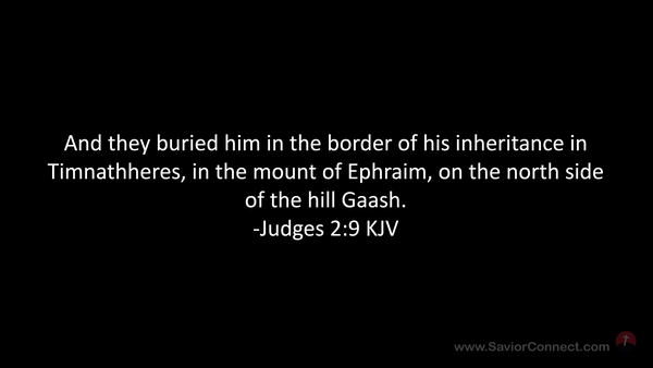 And they buried him in the border of his inheritance in Timnathheres, in the mount of Ephraim, on the north side of the hill Gaash. -Judges 2:9 KJV