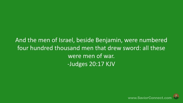 And the men of Israel, beside Benjamin, were numbered four hundred thousand men that drew sword: all these were men of war. -Judges 20:17 KJV