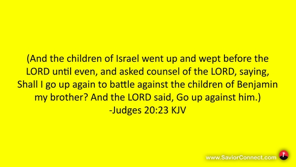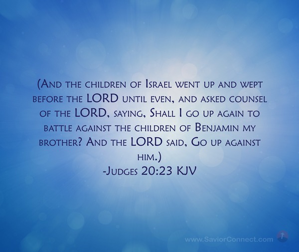 (And the children of Israel went up and wept before the LORD until even, and asked counsel of the LORD, saying, Shall I go up again to battle against the children of Benjamin my brother? And the LORD said, Go up against him.) -Judges 20:23 KJV