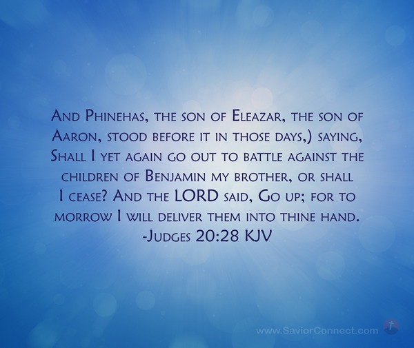 And Phinehas, the son of Eleazar, the son of Aaron, stood before it in those days,) saying, Shall I yet again go out to battle against the children of Benjamin my brother, or shall I cease? And the LORD said, Go up; for to morrow I will deliver them into thine hand. -Judges 20:28 KJV