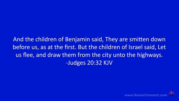 And the children of Benjamin said, They are smitten down before us, as at the first. But the children of Israel said, Let us flee, and draw them from the city unto the highways. -Judges 20:32 KJV