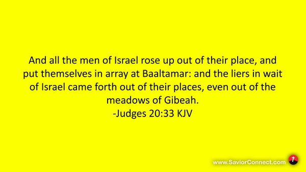 And all the men of Israel rose up out of their place, and put themselves in array at Baaltamar: and the liers in wait of Israel came forth out of their places, even out of the meadows of Gibeah. -Judges 20:33 KJV