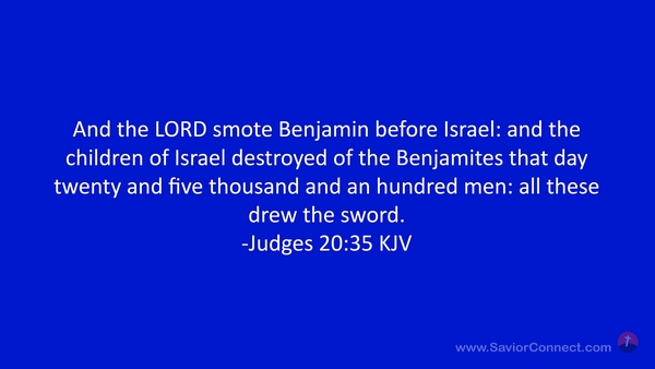 And the LORD smote Benjamin before Israel: and the children of Israel destroyed of the Benjamites that day twenty and five thousand and an hundred men: all these drew the sword. -Judges 20:35 KJV