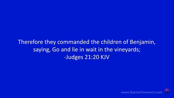 Therefore they commanded the children of Benjamin, saying, Go and lie in wait in the vineyards; -Judges 21:20 KJV