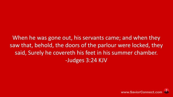 When he was gone out, his servants came; and when they saw that, behold, the doors of the parlour were locked, they said, Surely he covereth his feet in his summer chamber. -Judges 3:24 KJV