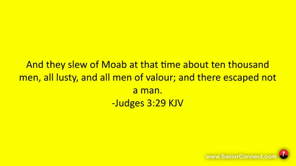 And they slew of Moab at that time about ten thousand men, all lusty, and all men of valour; and there escaped not a man. -Judges 3:29 KJV