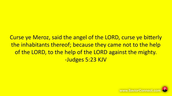 Curse ye Meroz, said the angel of the LORD, curse ye bitterly the inhabitants thereof; because they came not to the help of the LORD, to the help of the LORD against the mighty. -Judges 5:23 KJV