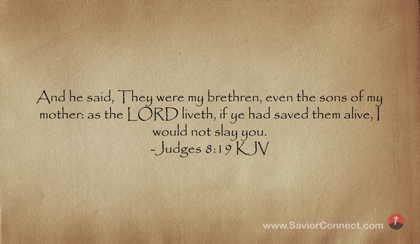 And he said, They were my brethren, even the sons of my mother: as the LORD liveth, if ye had saved them alive, I would not slay you. -Judges 8:19 KJV