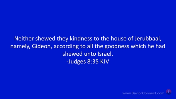 Neither shewed they kindness to the house of Jerubbaal, namely, Gideon, according to all the goodness which he had shewed unto Israel. -Judges 8:35 KJV