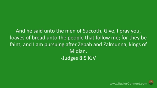 And he said unto the men of Succoth, Give, I pray you, loaves of bread unto the people that follow me; for they be faint, and I am pursuing after Zebah and Zalmunna, kings of Midian. -Judges 8:5 KJV