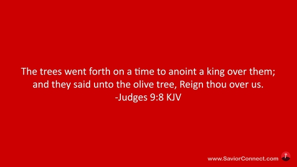 The trees went forth on a time to anoint a king over them; and they said unto the olive tree, Reign thou over us. -Judges 9:8 KJV