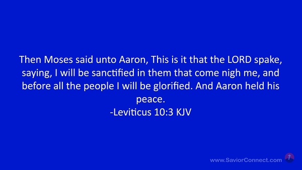 Then Moses said unto Aaron, This is it that the LORD spake, saying, I will be sanctified in them that come nigh me, and before all the people I will be glorified. And Aaron held his peace. -Leviticus 10:3 KJV