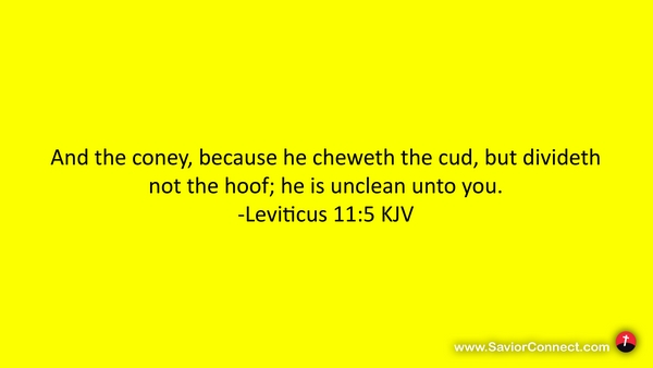 And the coney, because he cheweth the cud, but divideth not the hoof; he is unclean unto you. -Leviticus 11:5 KJV