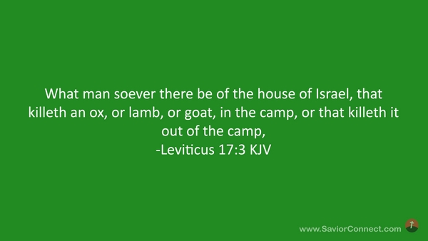 What man soever there be of the house of Israel, that killeth an ox, or lamb, or goat, in the camp, or that killeth it out of the camp, -Leviticus 17:3 KJV
